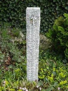 Eine Granit Rasenkante ist ein wichtiges Element der Gartengestaltung. Besonders die runde Form wirkt harmonisch. Der Stein ist rundum geflammt und veredelt, somit hat dieser Stein eine besonders glatte und ebenmäßige Oberfläche. WASSERZAPFSÄULE, GRANIT , Bewässerung, Außenwasserhahn, Brunnen Zapfstelle - EUR 1900.